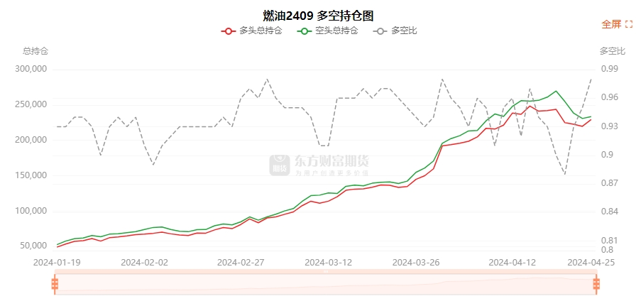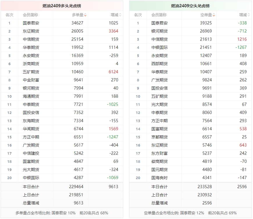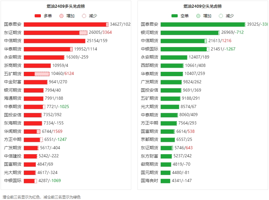 总体而言,燃油2409合约今日增仓上行,多空持仓排名前20席中,多空双方均呈进场态势,多头进场意愿强于空头。