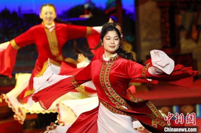 6月20日,陕西西安,“丝路遗产秀”文化交流活动在大唐芙蓉园举行。活动通过“丝路讲述”、东仓鼓乐表演、留学生文艺表演等环节,庆祝“丝绸之路:长安—天山廊道的路网”入选《世界遗产名录》十周年。共有来自俄罗斯、韩国、哈萨克斯坦、吉尔吉斯斯坦等国家的百余名留学生和中国学生,以及非遗艺术家、古迹遗址保护专家们参加。图为留学生表演民族舞蹈。张远摄